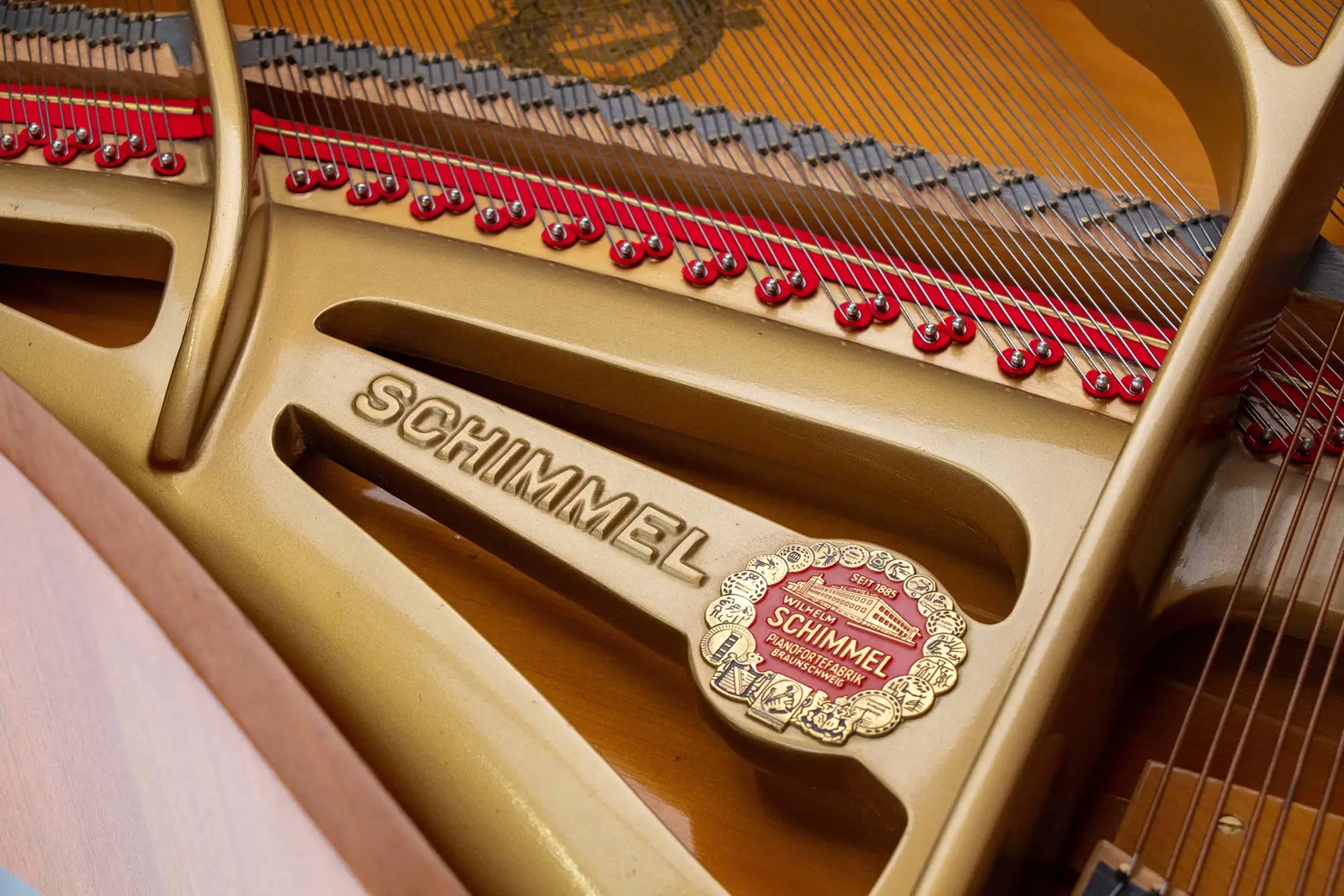 Die Oberfläche in nuss seidenmatt wirkt edel und zugleich unaufdringlich. Hergestellt in Deutschland steht der Schimmel 150 für solide Konstruktion, stabile Stimmhaltung und langlebige Materialien.